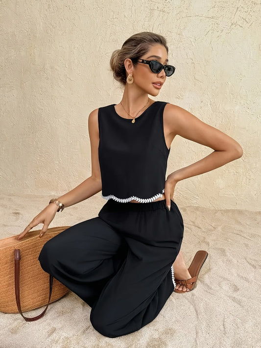 Ce duo gilet et pantalon est l'incarnation du luxe discret : une silhouette architecturale, des lignes épurées et un noir profond qui impose le respect. C’est la tenue de celle qui sait où elle va.